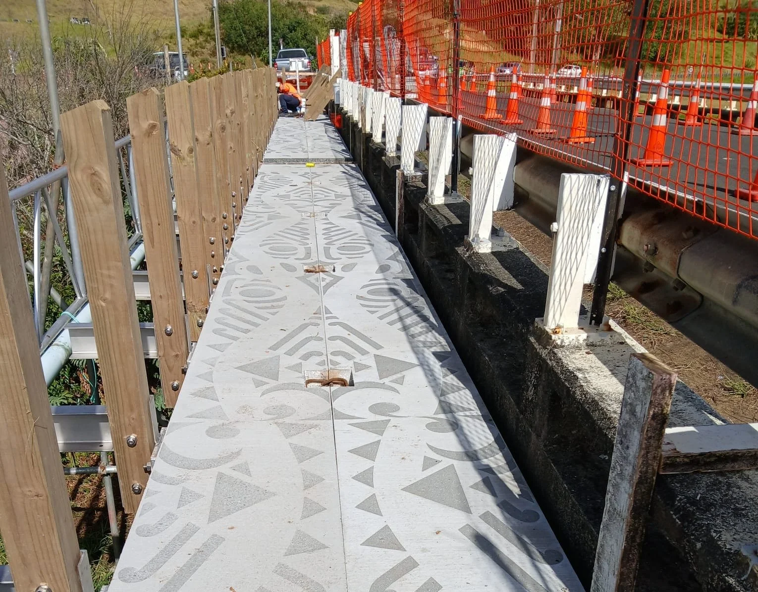 To honour the bridge’s cultural setting, the deck design incorporated Māori patterning, developed in collaboration with local iwi. Construction methods were carefully planned to avoid unnecessary excavation, preserving the surrounding whenua.